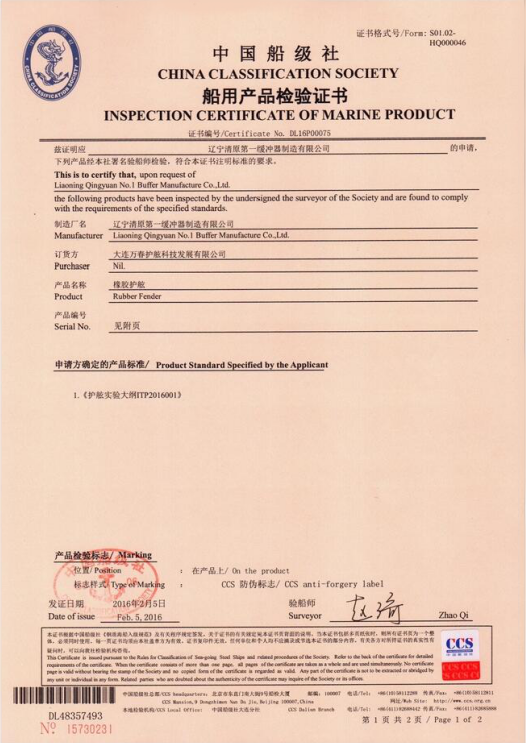 我们公司生产的缓冲器产品受到国际用户的认可,同时获得CE 国际认证证书、BV 国际检测认证、PIANC会员证书、中国船级社认证证书、SGS国际认证证书等。同时,我们公司荣获中国港口码头链商俱乐部会员、世界杰出华商协会会员、中国制造网认证供应商等荣誉。